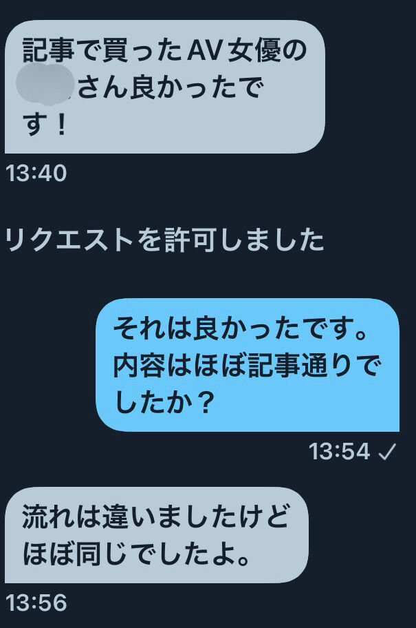 現役AV女優さんを予約して訪問した同志さんから早速、嬉しい報告がありました。