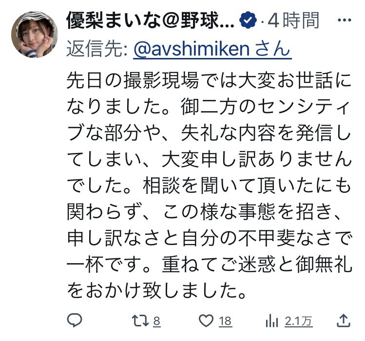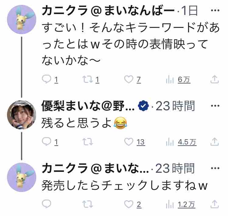 — 優梨まいな@野球女子 (@yuurimaina) August 12, 2023