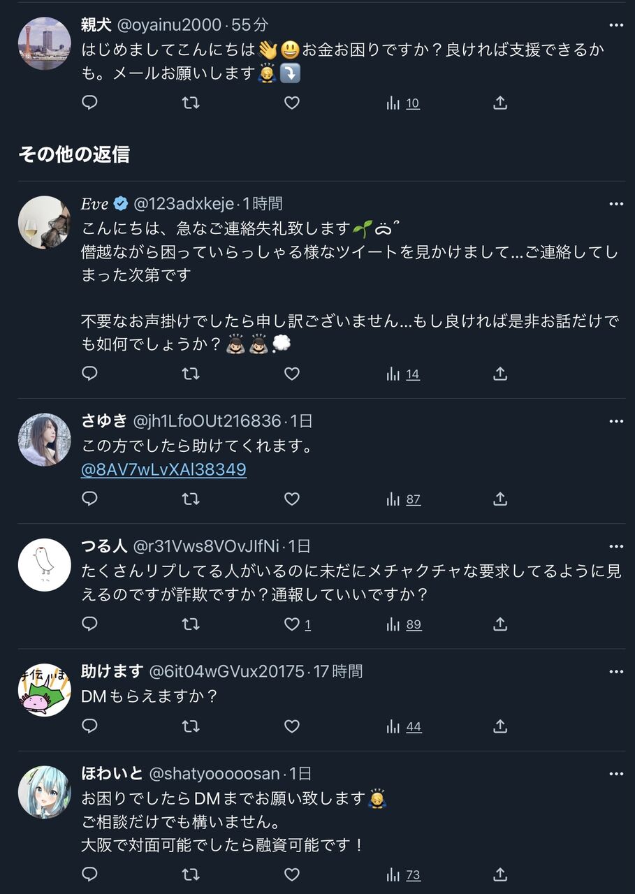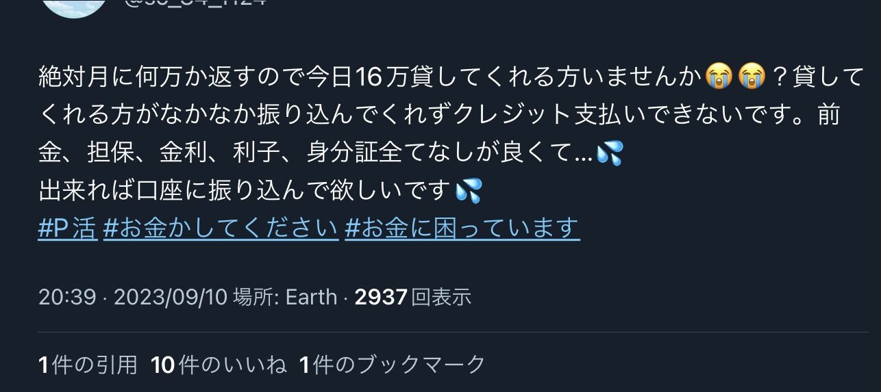 ②パパ活アカが16万円を貸してほしいとお願い