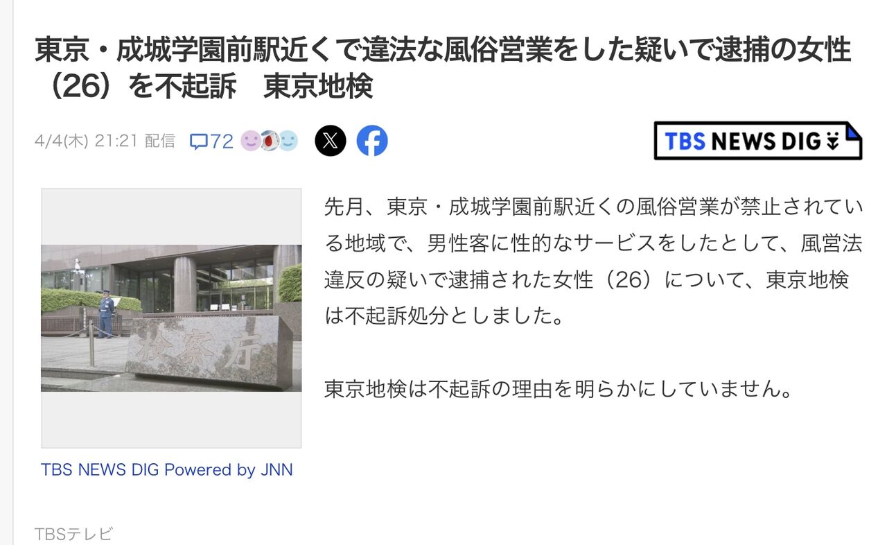 いつものように、風営法違反で経営者の名前が報道されましたが、同時に26歳のセラピストが逮捕されたと実名で報道されました。