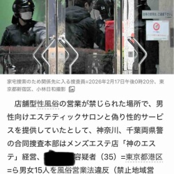 今回は神のエステ「本部」が摘発されました引用禁止地域で性風俗店を営業した疑い、神奈川県警が男女15人逮捕2026年2月18日 13時35分 店舗型性風俗の営業が禁じられた場所で、男性向けエステティックサロンと偽り性的サービスを提供していたとして、神奈川、千葉両県警の合 ...